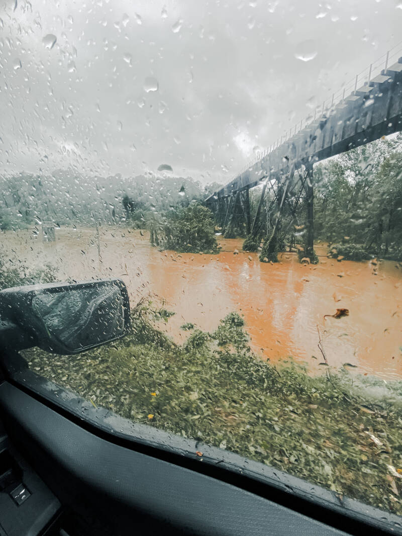I'm woken up by the howling of the wind. I get up and flip the light switch. Nothing. I flip it up and down a couple more times. The power is out. I head downstairs to see my family sitting in the living room. They've come to the same realization. Once we had come to terms with the current situation, we went into strategy mode. The basement was flooded and branches littered the yard. But first, breakfast. Father started making some bacon on the propane-powered grill outside. I played some music that I had downloaded on the speaker outside. The crack of tree branches could be heard in the distance. Some much closer. We decided to head out for supplies. Most of the roads were blocked. Trees were toppled over, some across the roads, some on houses, and some trees that took power lines down with them. Large areas of what used to be land was now flooded. The power lights were out, so it was a metaphorical free-for-all. We managed to get to a local hardware store and purchase a power inverter. Everyone was sold out of generators. Most grocery stores were either deserted or at full capacity. We began making the journey back home.
